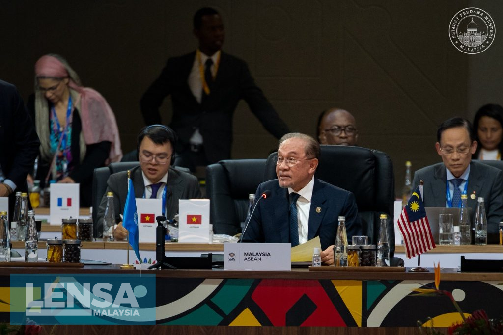 JOHANNESBURG — Perdana Menteri Malaysia, Datuk Seri Anwar Ibrahim, tampil lantang pada Sidang Kemuncak G20 di Johannesburg dengan menggesa komuniti antarabangsa untuk menghentikan segera kezaliman dan pembantaian di Gaza, selain mengakhiri kemelut berpanjangan di Sudan serta mencari penyelesaian damai untuk konflik di Ukraine.