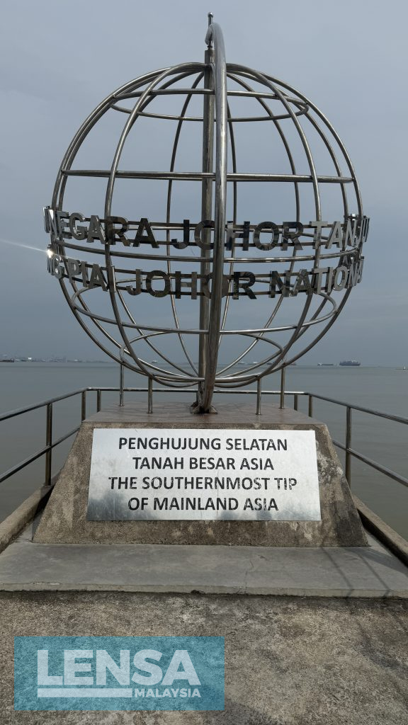 Di hujung laluan kayu, terdapat sebuah dataran konkrit yang luas menghadap laut. Di sinilah terletaknya monumen “The Southernmost Tip of Mainland Asia”, tempat wajib untuk bergambar. Angin laut di sini kencang, dan dari kejauhan, anda boleh nampak kapal dagang besar lalu-lalang di Selat Melaka, nadi perdagangan dunia yang sibuk, kontras dengan sunyi damai taman ini.